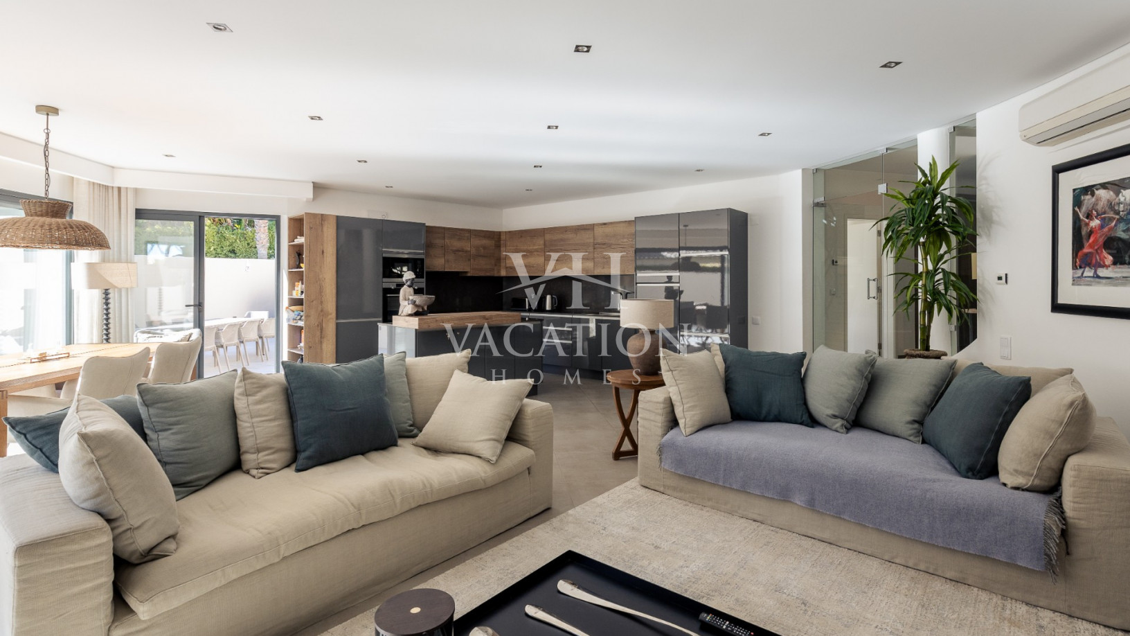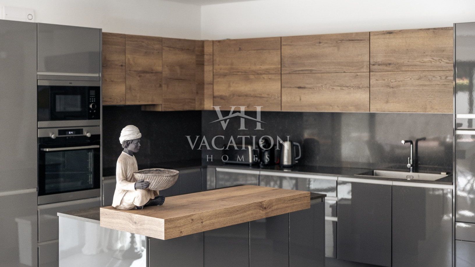 Entrance Level: entrance hall, guest toilet, living and dining area with fully equipped open plan kitchen. All living areas have access, through large sliding doors, to the pool and large terrace.