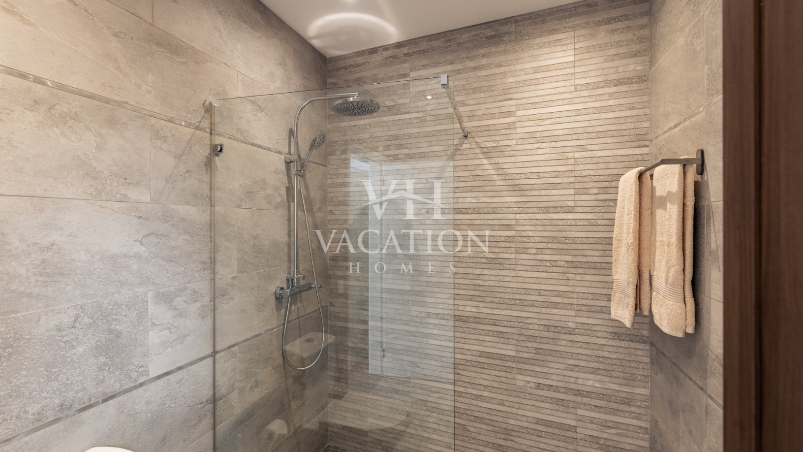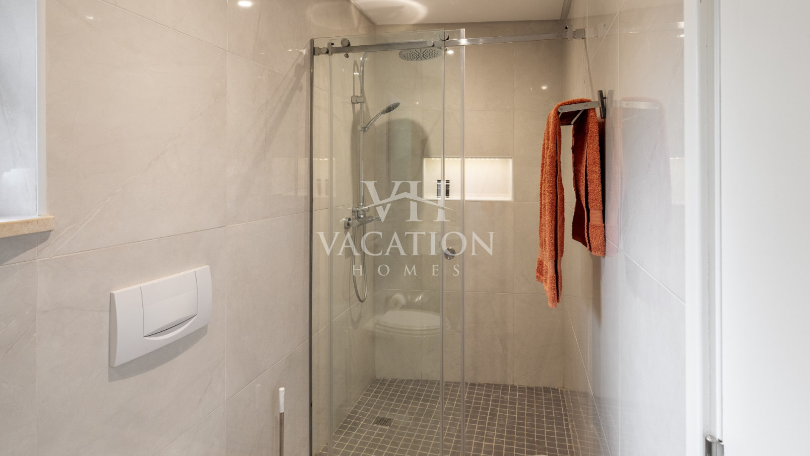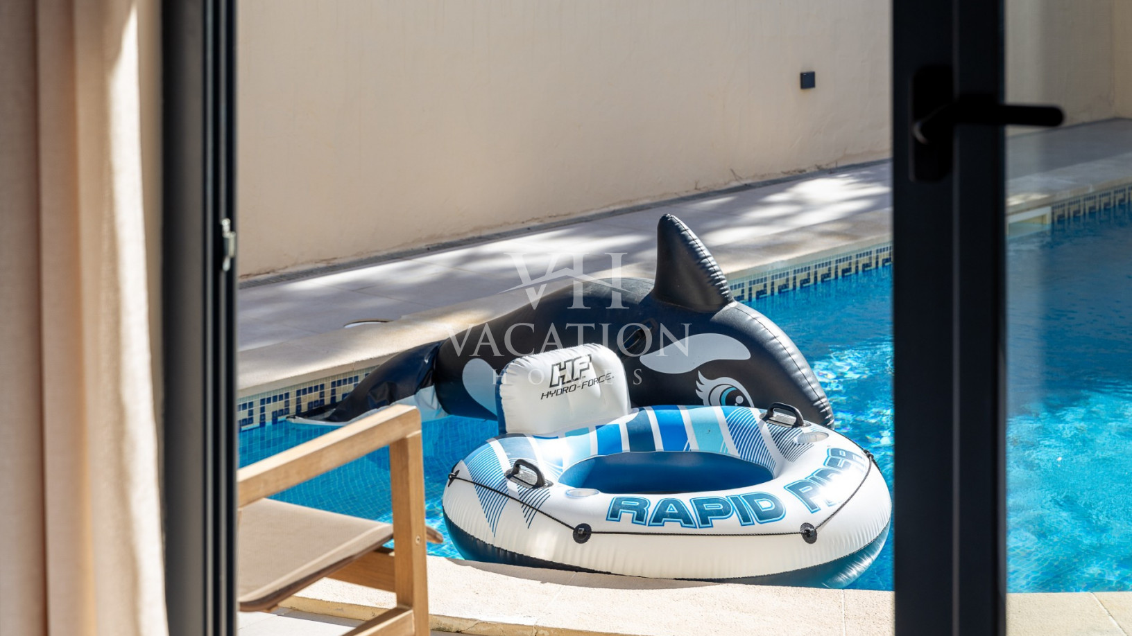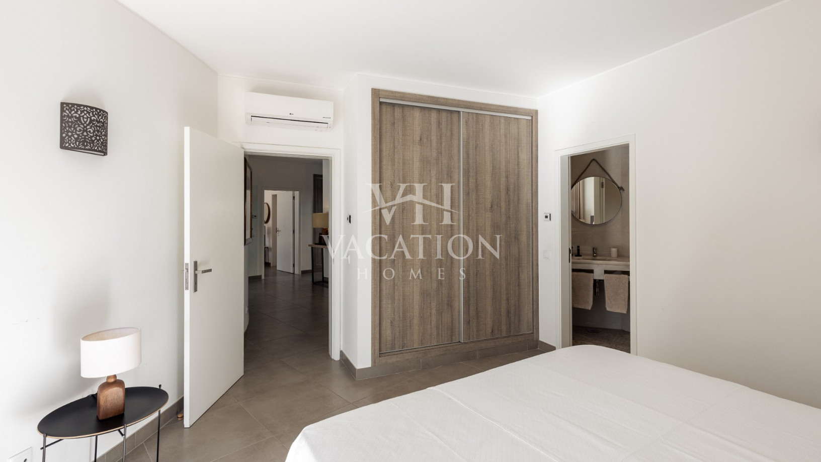 Downstairs, there is a bedroom with double bed and en-suite bathroom (shower) overlooking the terrace and a twin bedroom and en-suite bathroom (shower) overlooking the pool..