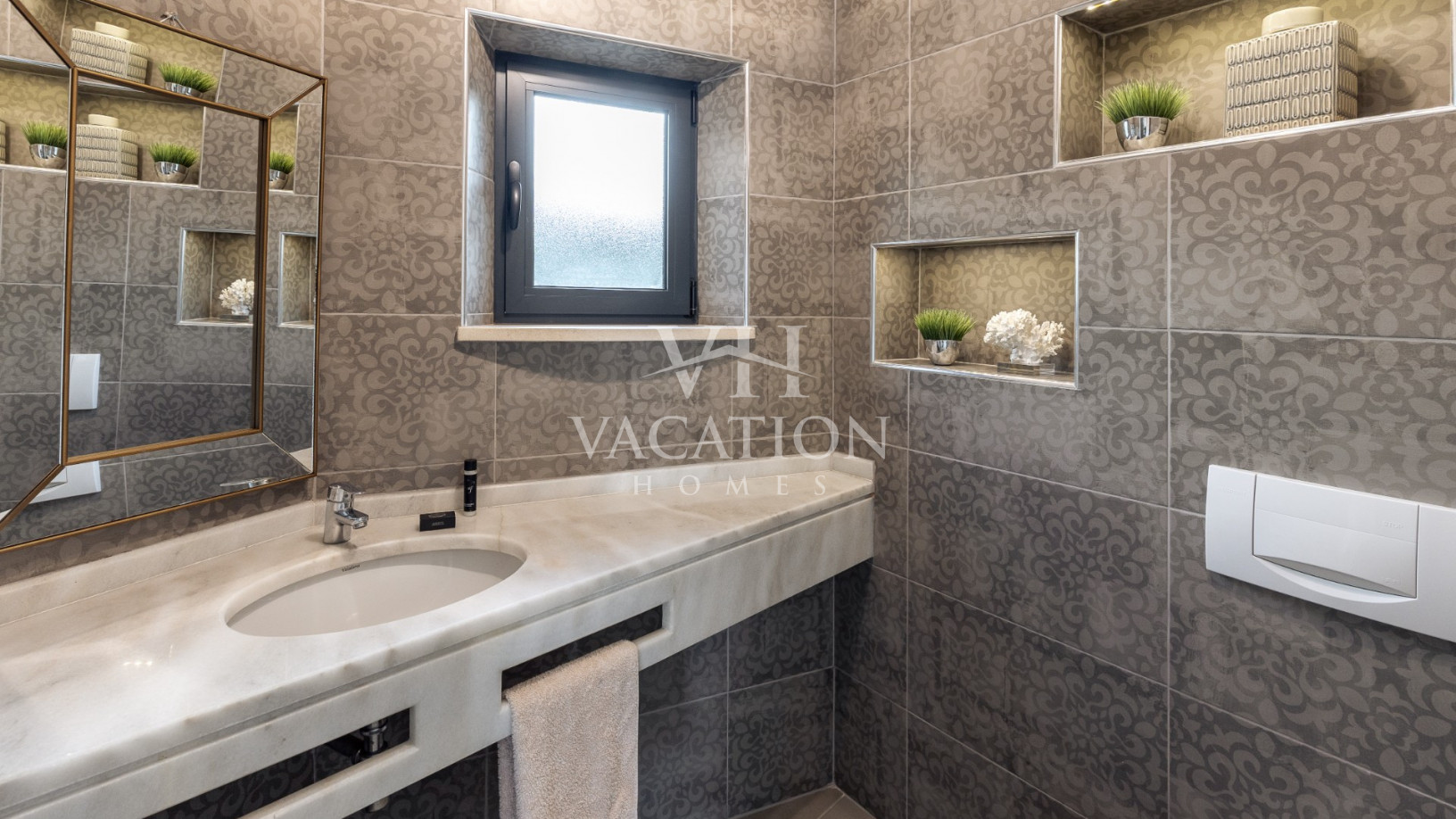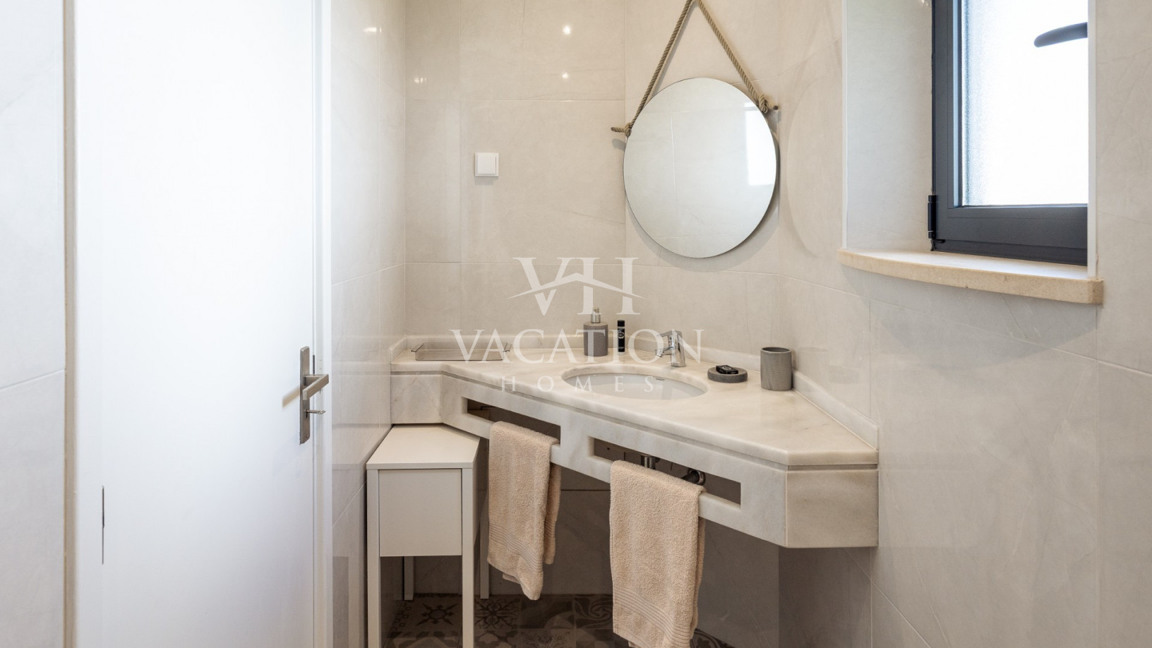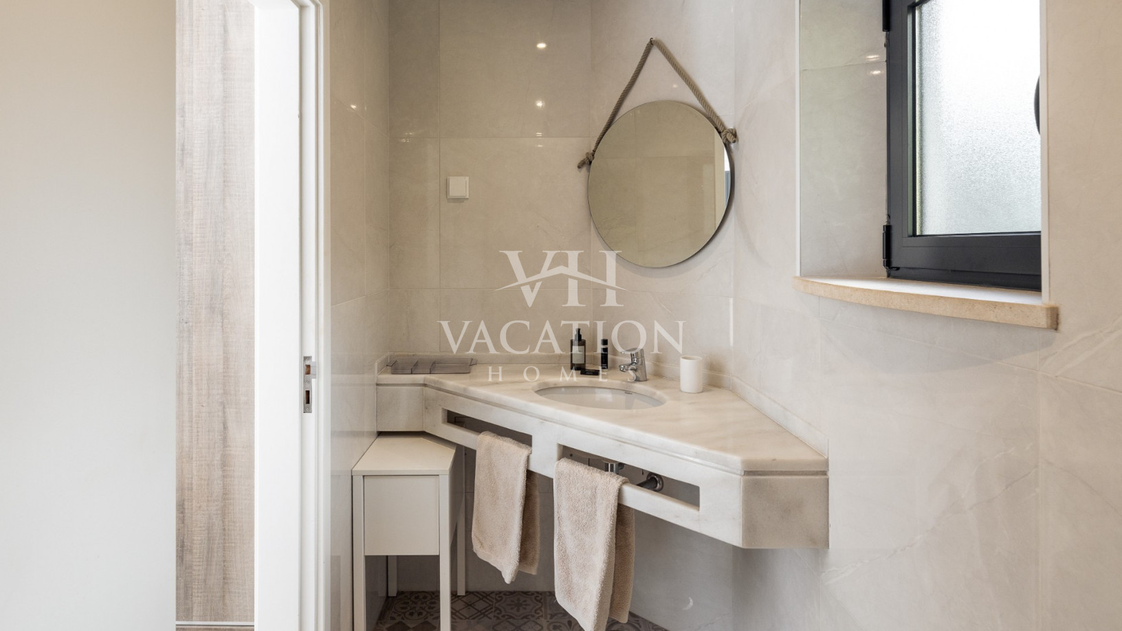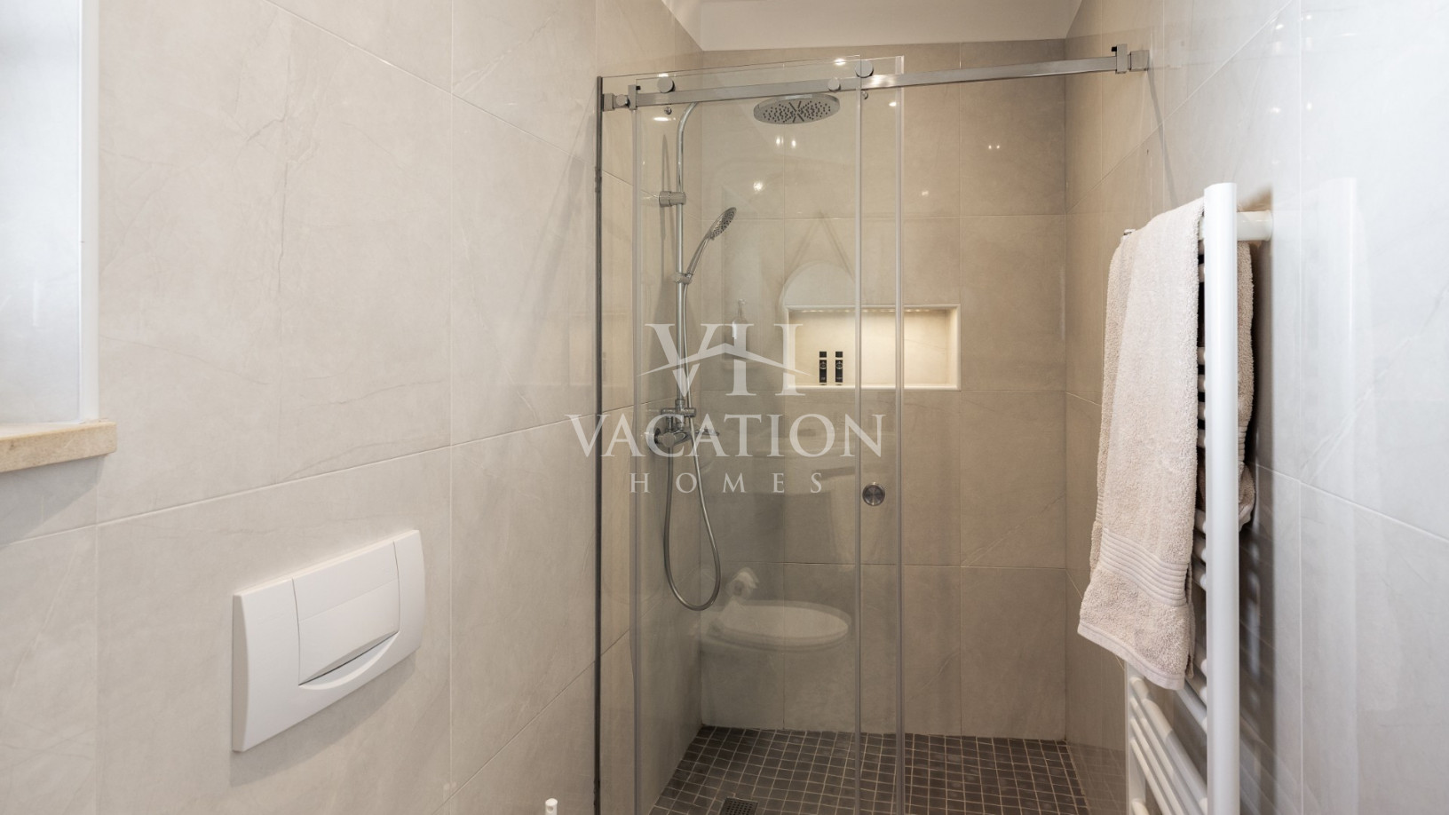 Downstairs, there is a bedroom with double bed and en-suite bathroom (shower) overlooking the terrace and a twin bedroom and en-suite bathroom (shower) overlooking the pool..