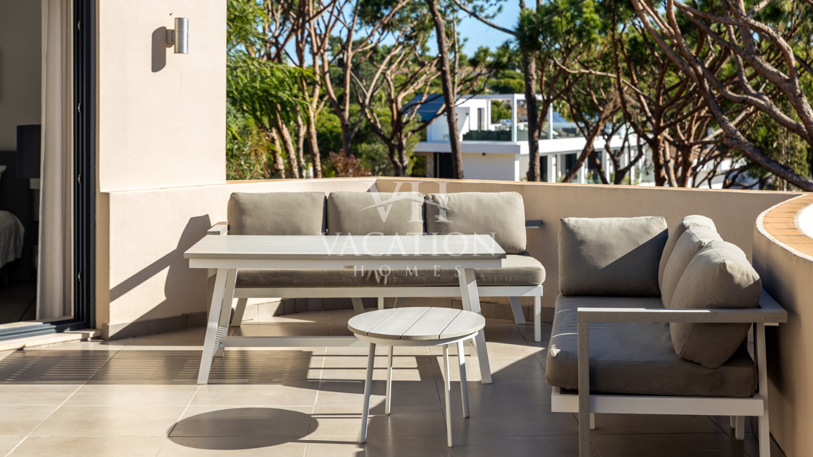 On the 1st floor: there is a double bedroom with en-suite bathroom (shower) and with access to a lovely terrace with nice sofas.