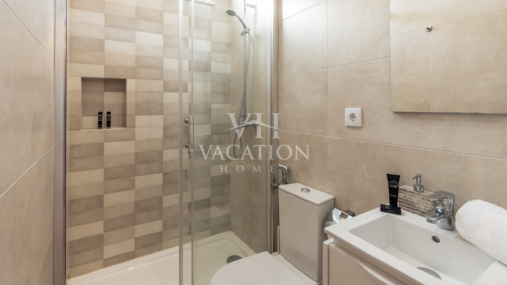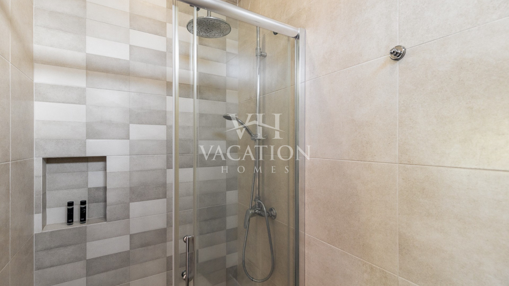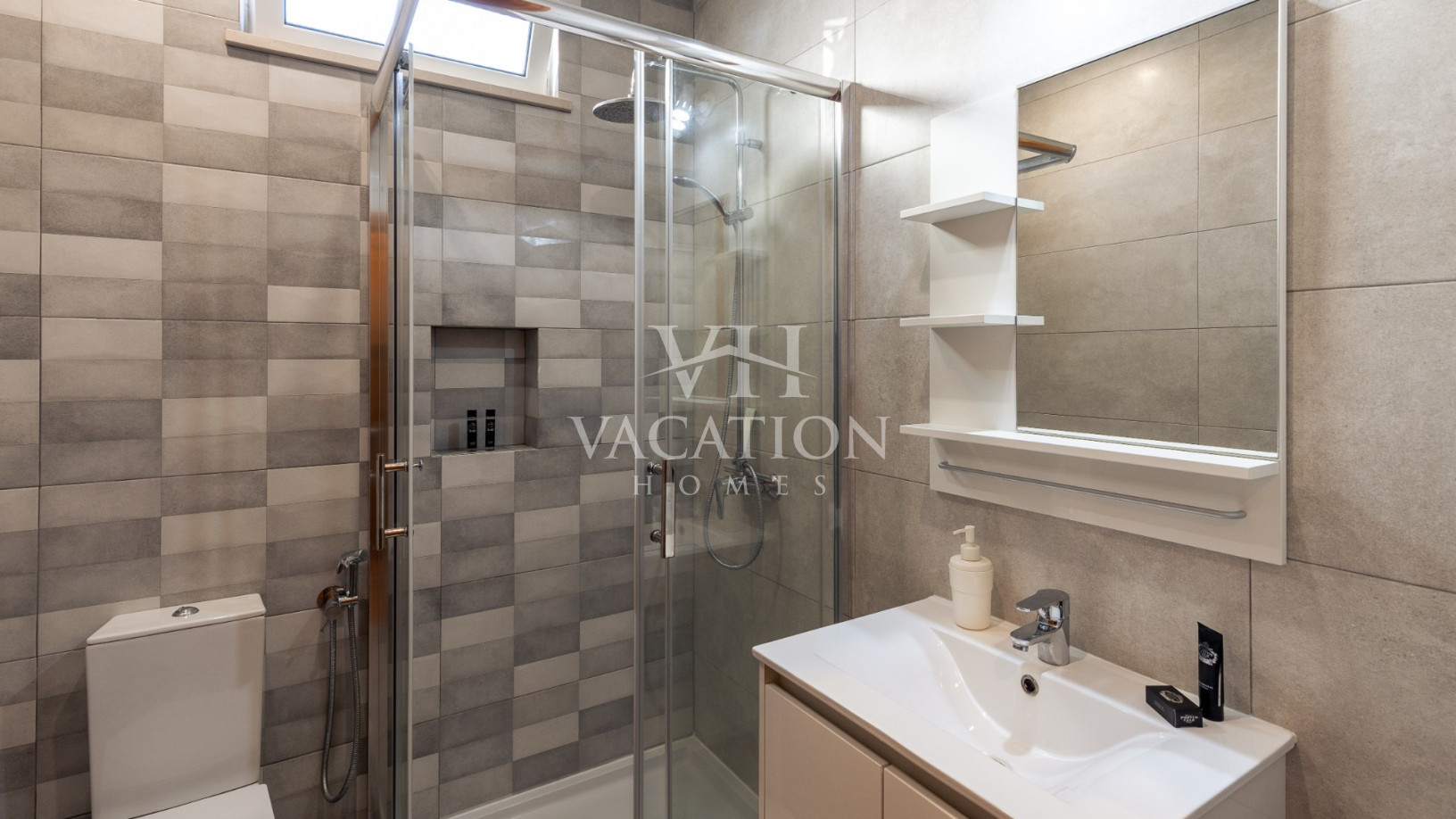 - Bedroom 2: two single beds and en-suite bathroom with shower, A/C and with access to the pool terrace through a sliding door.